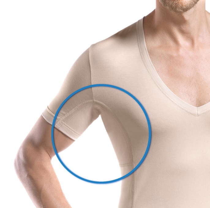 Type EXTREME functional undershirt (particularly deep V-neck) to prevent very large underarm sweat stains